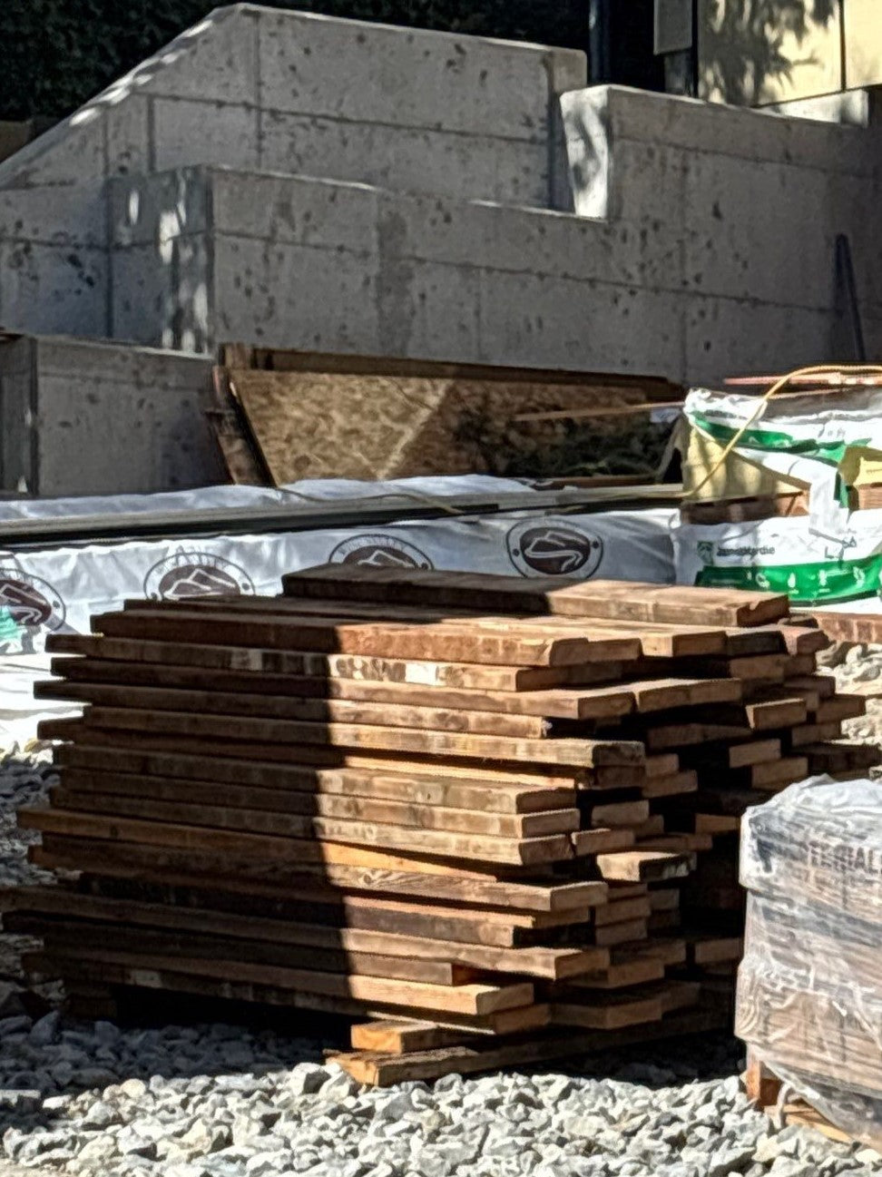 Lumber recovered from Seattle area buildings. Most of the metal hardware has been removed.